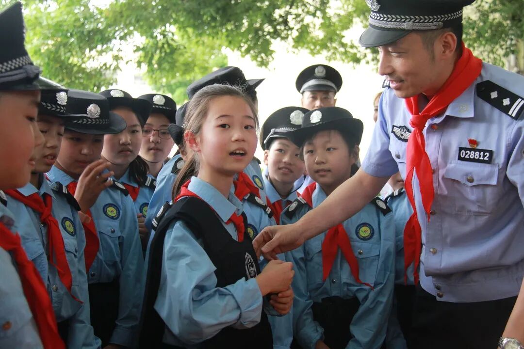 活动开始,朱玲玲校长就从无锡市公安局宣传处副处长马旭峰手上接下了“无锡市公安局少年警校”标牌,芦庄第二小学成为无锡市首个“少年警校”。